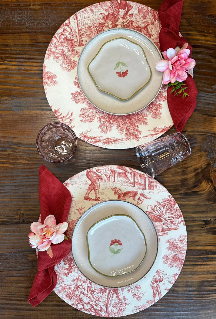 Accanto ai sottopiatti, realizziamo portatovaglioli e tovaglioli coordinati, runner e tovagliette, con la possibilità di personalizzarli tramite ricami di cifre o parole, per aggiungere un tocco unico alla mise en place.