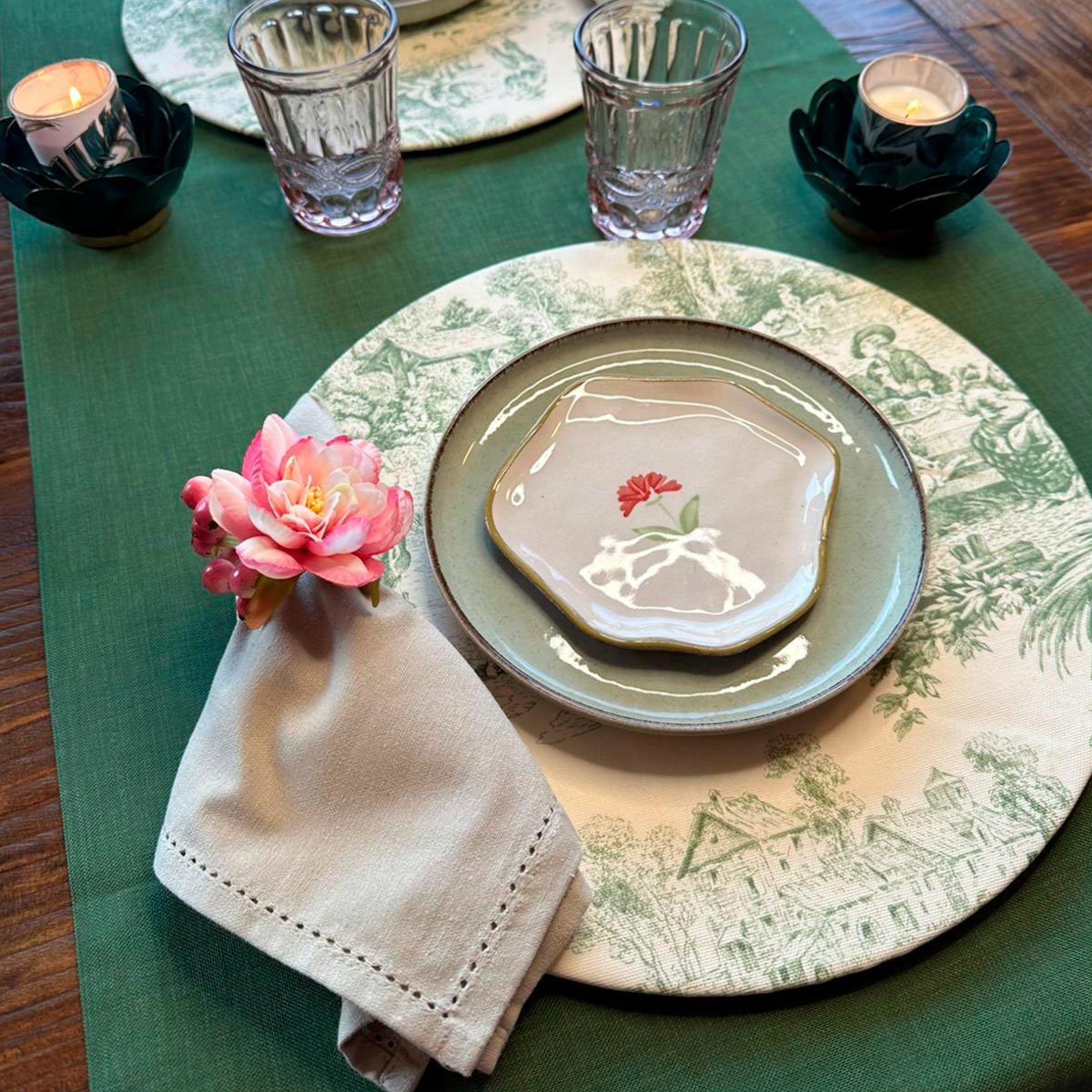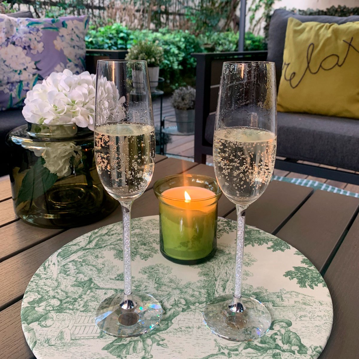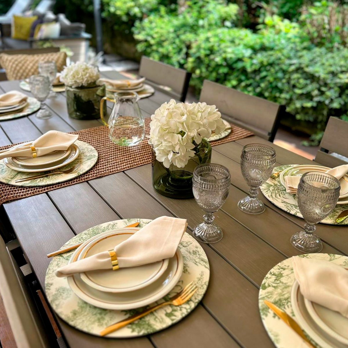La collezione En Plein Air celebra l’eleganza raffinata del Toile de Jouy, reinterpretata con un tocco contemporaneo: stampe classiche, colori delicati e un tessuto antimacchia resistente pensato per vivere sia all’interno sia all’esterno, come in una festa in giardino.