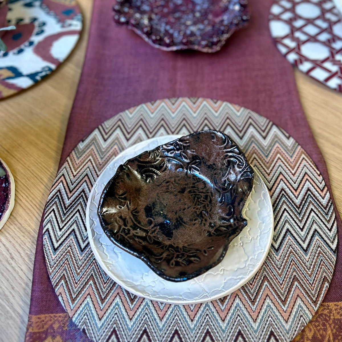 Ogni sottopiatto è un pezzo unico: le piccole imperfezioni sono segno dell’autenticità della lavorazione artigianale e ne accrescono il valore.