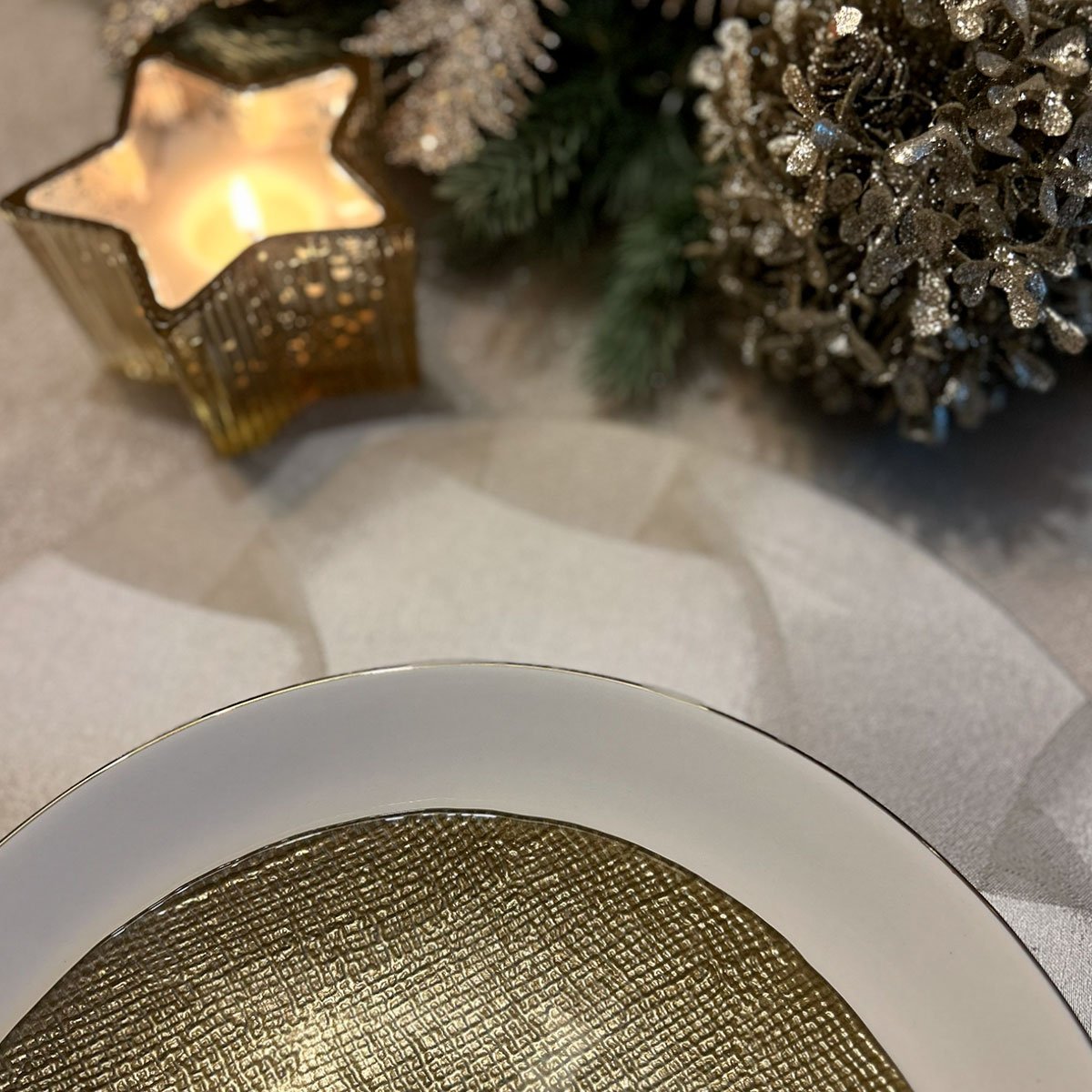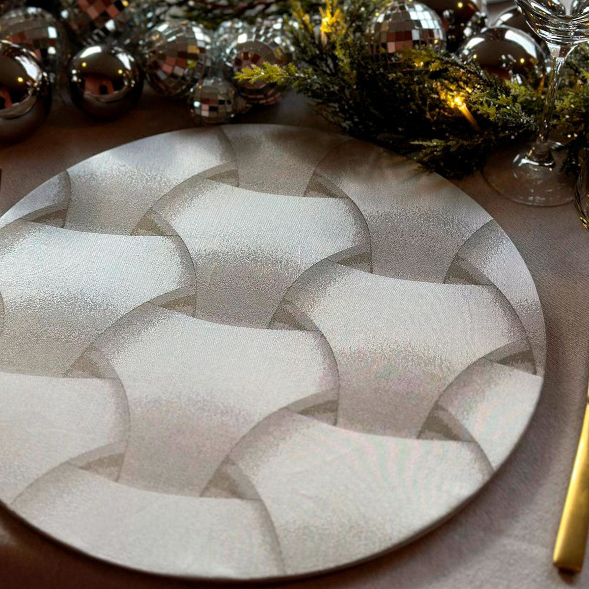 Il sottopiatto Specchio illumina la tavola con un intreccio morbido e tridimensionale dai riflessi perlacei. La sua texture sofisticata lo rende perfetto per mise en place di grande charme: cene di gala, Capodanno, ricevimenti moderni ed eventi esclusivi.