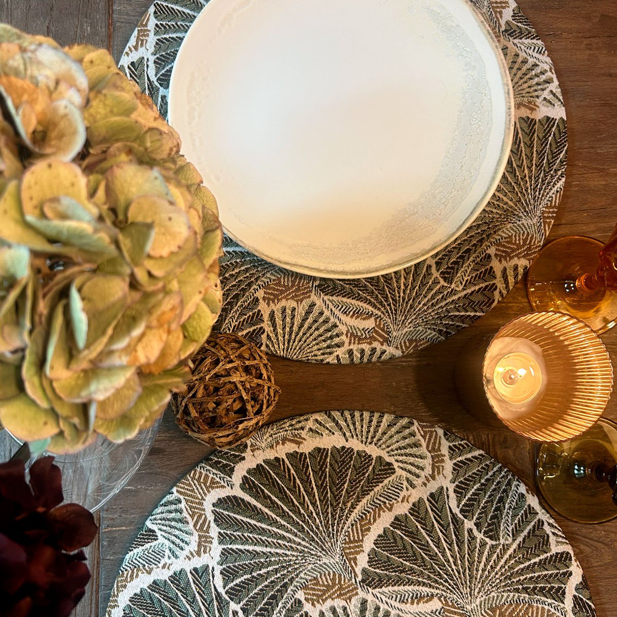 Ispirato alla natura e ai toni della terra, questo sottopiatto porta in tavola l’armonia del verde salvia e dell’oro. Un design elegante e organico, simbolo di longevità e equilibrio.